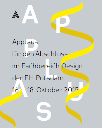 Der Fachbereich Design der Fachhochschule Potsdam präsentiert wieder die spannendsten Abschlussarbeiten. Bereits zum 10. Mal feiert der Fachbereich hiermit seinen Nachwuchs. Kuratiert wird die Ausstellung von einer Jury und die ausgewählten Exponate stehen repräsentativ für den Fachbereich aus den Studiengängen Interface-, Kommunikations- und Produktdesign, sowie der Europäischen Medienwissenschaft. Ergänzt wird die Ausstellung durch eine Party und das APPLAUS-Symposium.