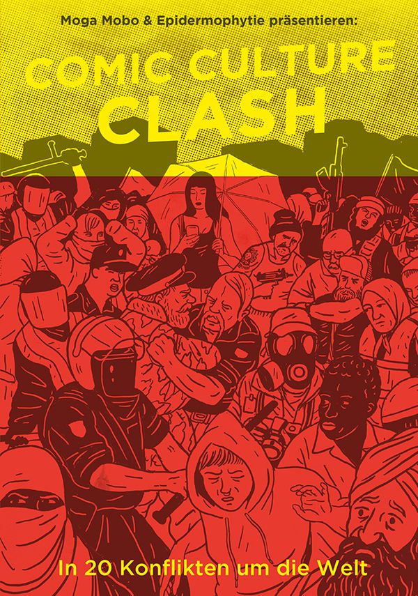 »Die Welt steht in Flammen und wir mitten drin«. Die Berliner Comicmagazine Moga Mobo und Epidermophytie haben 40 Comic-KünstlerInnen dazu eingeladen, sich insgesamt 20 konfliktreichen Themen zu widmen und diese Streitereien auf dem Zeichenbrett auszutragen.
