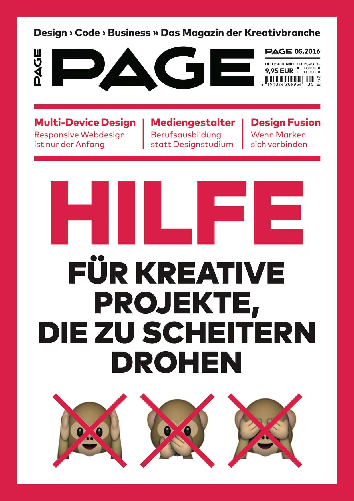 Die Titelgeschichte in PAGE 05.2016 geht alle Designprofis an, denn das will keiner von uns in seiner Kreativlaufbahn wirklich erleben. Haben Sie schon mal einen Job versemmelt? Oder so einen richtig ätzenden Teamfehler erlebt? Oft offenbart auch die Abstimmung mit dem Kunden erst im späteren Projektverlauf eklatante Lücken. Und dann ist sie plötzlich da, herangeschlichen auf leisen Sohlen: die Projektkrise. »Das Tückische an Krisen ist, dass man die Indikatoren am Anfang nicht ernst nimmt oder sie schlicht nicht erkennt«, sagt Eike König, Geschäftsführer des Grafikdesignstudios Hort in Berlin.