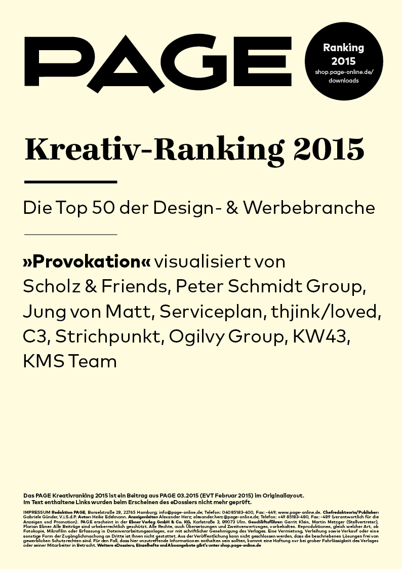 Darin befindet sich auch eine Liste aller Top 50 des PAGE Kreativ-Rankings 2015.