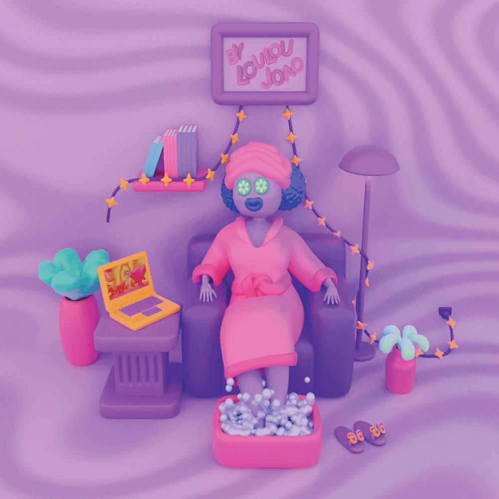 Having studied traditional illustration, Loulou João turned into a full-fledged 3D artist by teaching herself Blender and creating her very own alternative universe