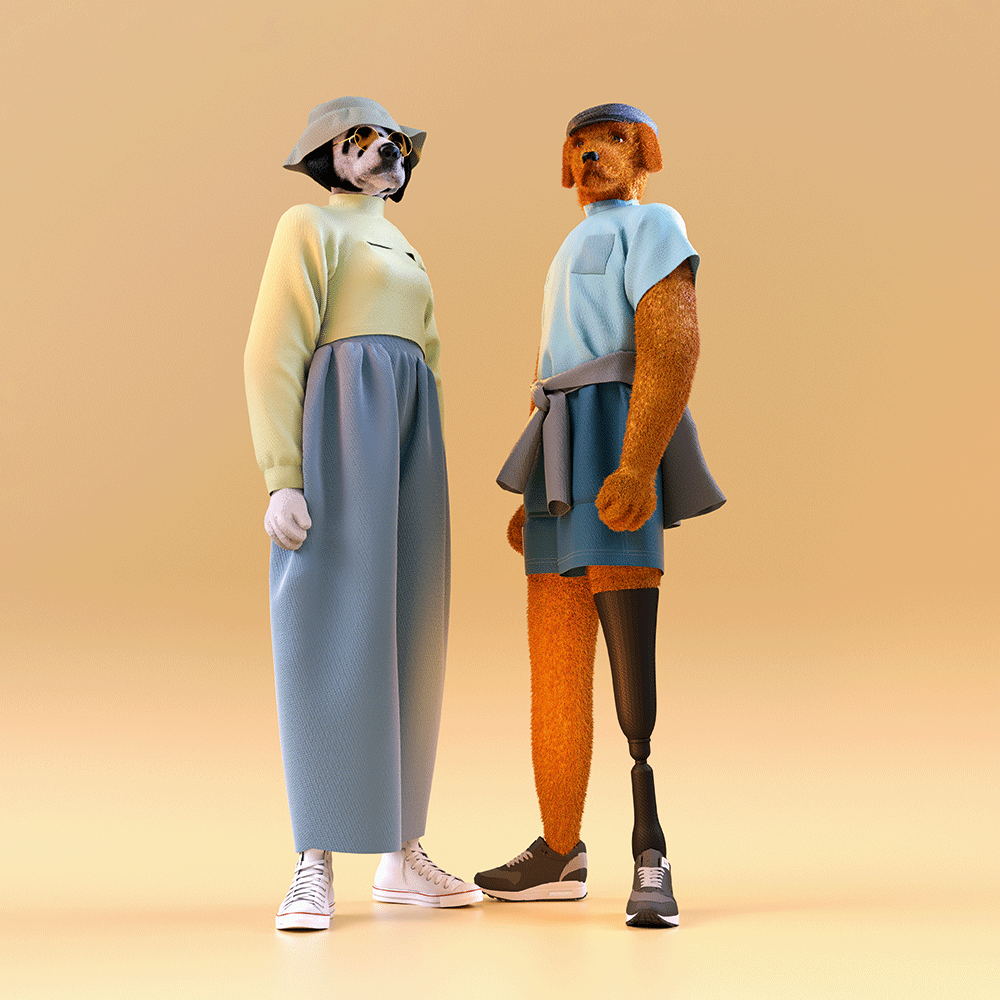 Abel: We both are deep admirers of Wes Anderson, his work was one of the main inspirations for the dogs. We really like how his animals become humanoid.
