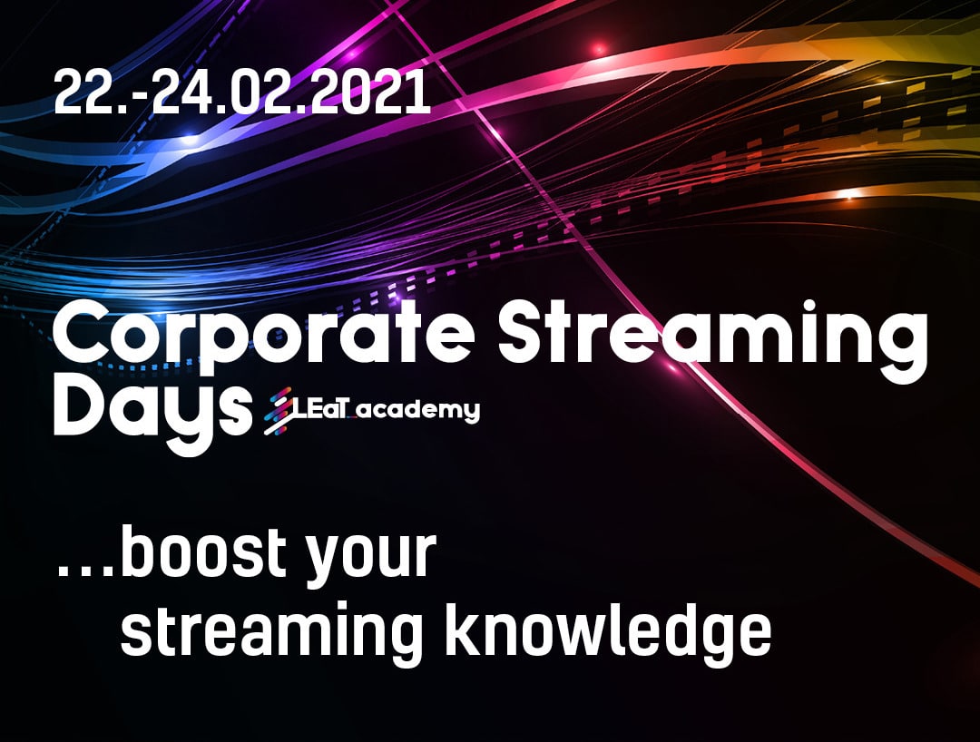 Wer seine Zielgruppe erreichen will, der braucht digitales Streaming-Know-how, doch Online-Events folgen ihren eigenen Gesetzmäßigkeiten. Um genau diese Kommunikationskompetenzen ging es im ersten Teil der Corporate Streaming Days 22. bis 24. Februar 2021), so dass die Teilnehmer hinterher Digital-Events im kleinen Rahmen selbst planen und durchführen, Angebote bewerten und professionell beauftragen konnten.