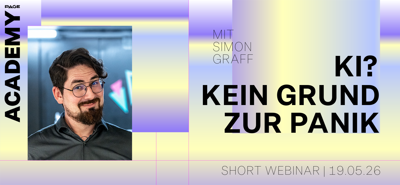Mit Simon Graff haben wir einen Referenten an Bord, der seit Jahren an der Schnittstelle von Technologie, Kultur und Gestaltung unterwegs ist. Er kennt die überdrehten Hypes genauso wie die praktischen Hebel, die Kreativen tatsächlich weiterhelfen. Im kompakten Zwei-Stunden-Format zeigt er, wie man KI souverän einordnet, smarter einsetzt und die eigene Rolle bewusst weiterentwickelt.