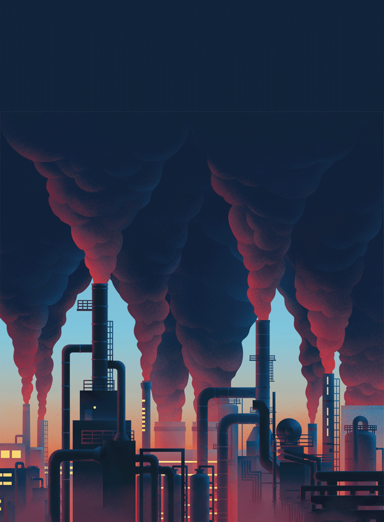 Für ihre Bachelorarbeit hat Ulrike Käcker ein digitales Ausstellungskonzept entwickelt, das erklärt, wie der Emissionshandel funktioniert. Anstelle von grauen Industrieanlagen und langweiligen Infografiken setzt die Designerin auf einen kontrastreichen Illustrationsstil und Animationen.
