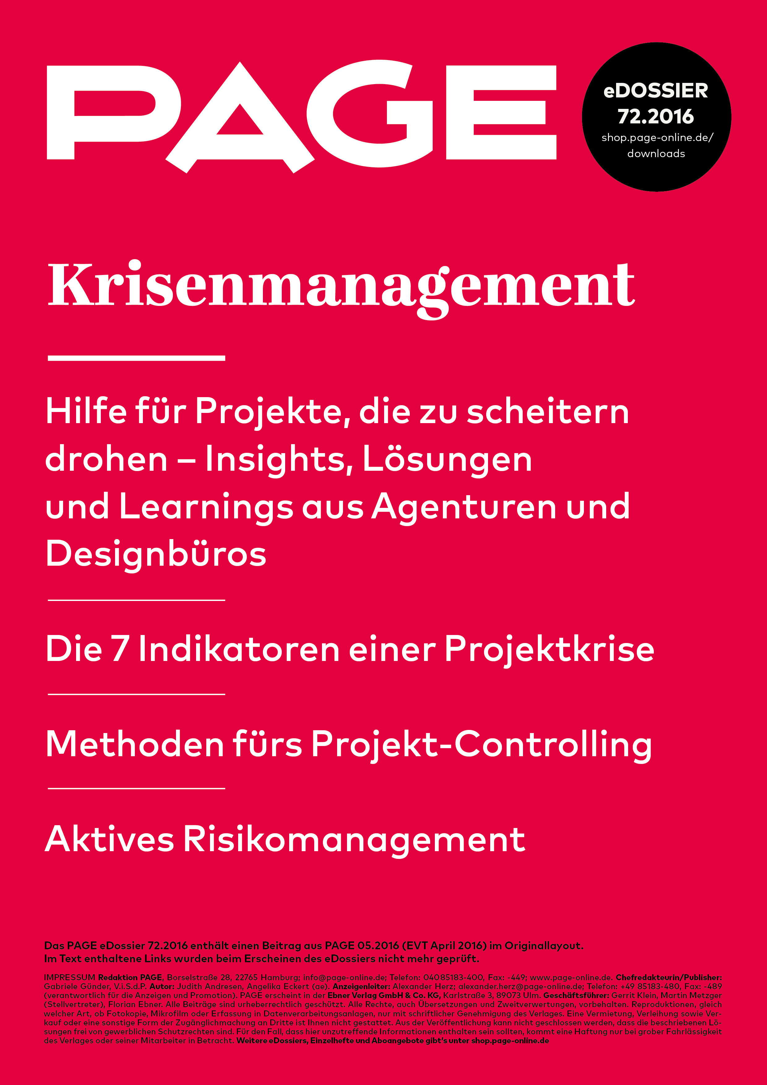 Für das PAGE eDossier »Krisenmanagement – Insights, Lösungen & Learnings aus Agenturen und Designbüros« haben wir Kreativ-Leader nach Krisenprojekten gefragt, die ihre Agentur so richtig durchgeschüttelt haben. Die Agenturen Demodern, Appmotion, Kolle Rebbe und Bureau Mirko Porsche haben sich für uns aktiv an die Momente erinnert, in denen ihnen ein Projekt aus der Kurve rauschte und wie sie den Karren wieder aus dem Dreck zogen. Rückblickend wird meist eine gute Geschichte daraus – und doch kann sich niemand im Job halten, wenn er nicht zeigt, dass er aus dem Scheitern gelernt hat und weiß, wie er ein Projekt mit dem nötigen Sicherheitsnetz ausstattet.