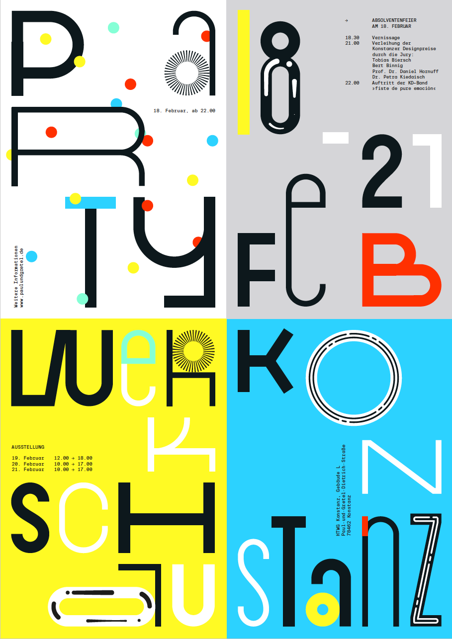 Ausstellung der Semesterarbeiten aus den Studiengängen Industrial Design, Intermediales Design, Mode, Schmuck, Visuelle Kommunikation, Master in Creative Direction, Kunst und Kulturwissenschaften.