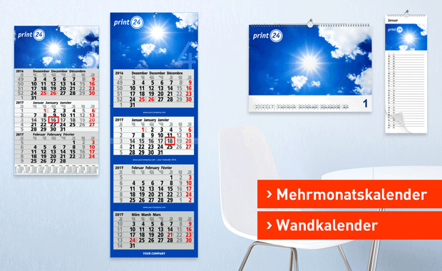 Jetzt Kalender für 2017 bei print24 schon ab Auflage 1 bestellen!