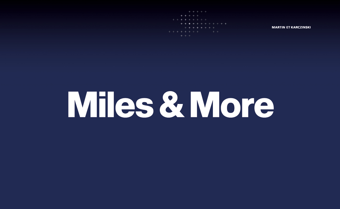 Deria: »Als Designer für Miles & More ist eine der größten Herausforderungen, den ständigen Perspektivenwechsel zu bewältigen. Es handelt sich um Europas größtes Prämien- und Vielfliegerprogramm und muss als Plattform für Airlines und für das Statusprogramm, die zahlreichen Partner der Marke und natürlich den Kunden dienen. Das entwickelte Design transportiert die Marke in die ganze Welt und muss als Imageträger funktionieren – immer vor dem Hintergrund des Plattformgedanken. Der Gestalter hat die Verantwortung, das Ganze zu sehen und die verschiedenen Stränge zusammenführen. Daher ist es wichtig, den Kunden sehr gut zu kennen. Daraus resultiert eine Bandbreite an verschiedenen Aufgaben und Perspektiven, was sehr toll ist.«