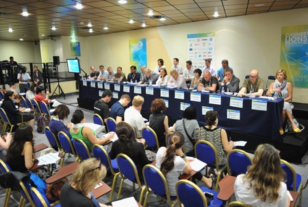 Bei den Preisverleihug in Cannes werden die Löwen-Sieger in den unterschiedlichen Wettbewerbssparten feierlich gewürdigt - einer Awardshow geht jedoch auch eine ganze Menge Arbeit voraus. Hier sehen Sie die Juroren der jeweiligen Kategorien bei ihrer Präsentation der Gewinner vor der Presse. Fotos: Francois Durand, Christian Alminana