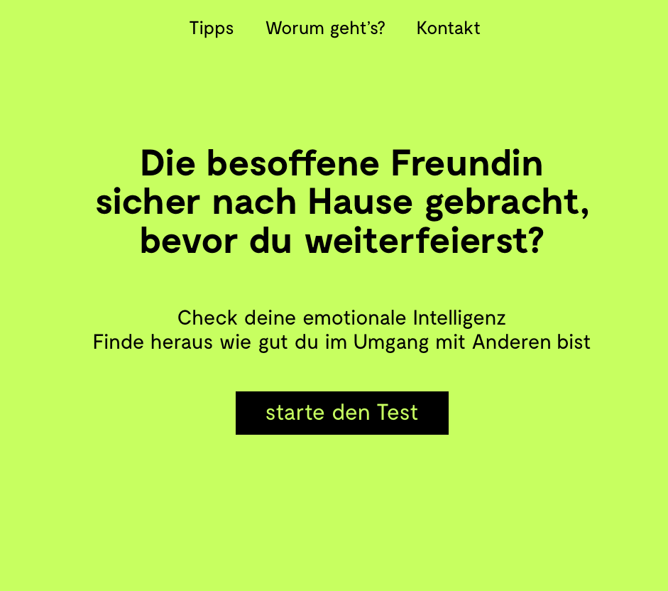 Bunt, ganz zeitgemäß, im richtigen Ton und mit Fragen, die aus dem Alltag gegriffen sind, dennoch zum Denken anregen und mit zahlreichen Informationen: Zum Internationalen Tag gegen Gewalt an Frauen hat das Frankfurter Büro für Grafikdesign Dreimorgen einen Online-Test entwickelt, der wichtige Fragen stellt und die richtigen Antworten dazu gibt.