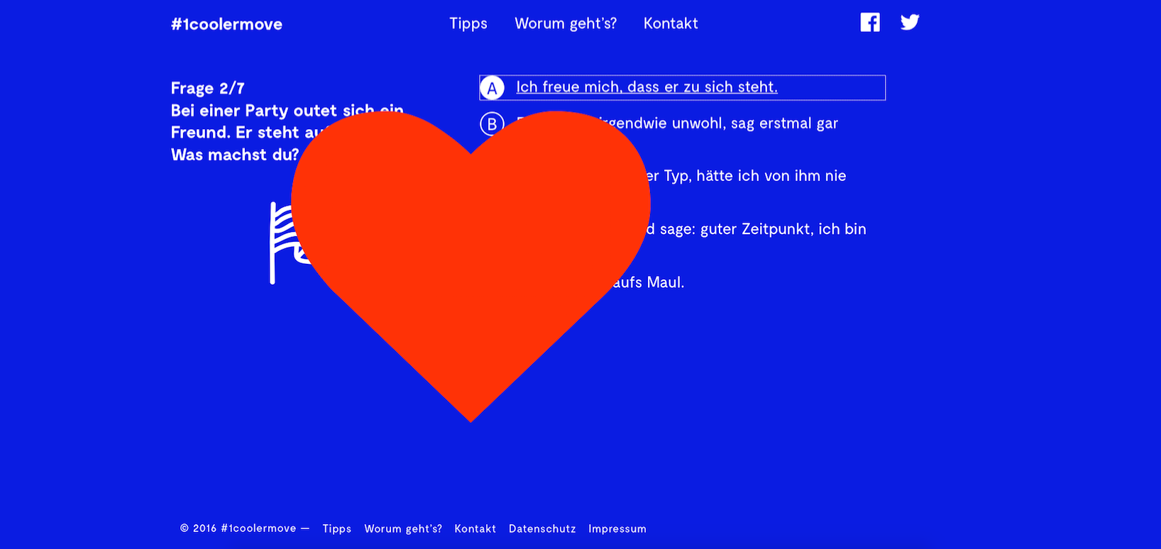 Auf #1Coolermove kann man sein eigenes Verhalten und seine eigenen Ansichten prüfen – und mit Glück am Ende zum Glitzer-Einhorn gekürt werden, das genau das richtige Sozialverhalten hat.