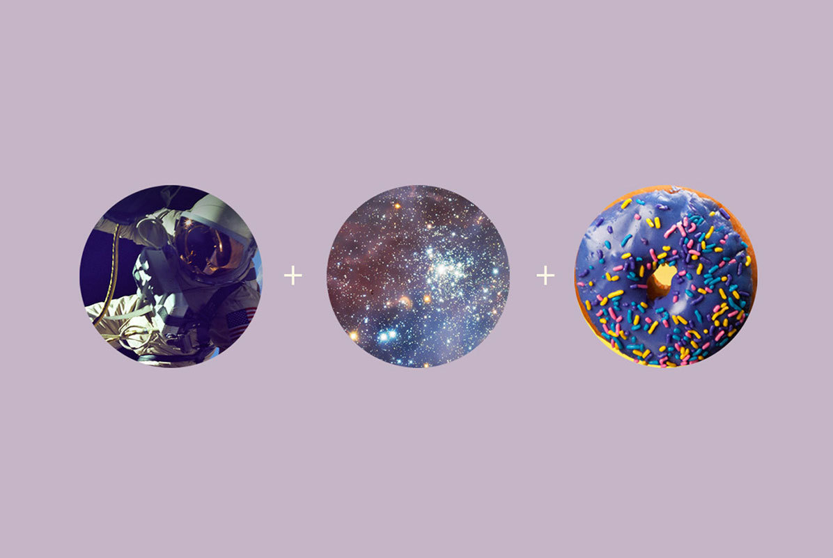 Für das Logo platzierte sie den Helm eines Astronauten in das Loch des Donuts oder setzten einen Planeten samt Flagge hinein. Zudem versahen sie das Logo mit den Umrissen einer Wolke, während drumherum und Donut-rund eine Galaxie aus Zuckerstreuseln flimmert.