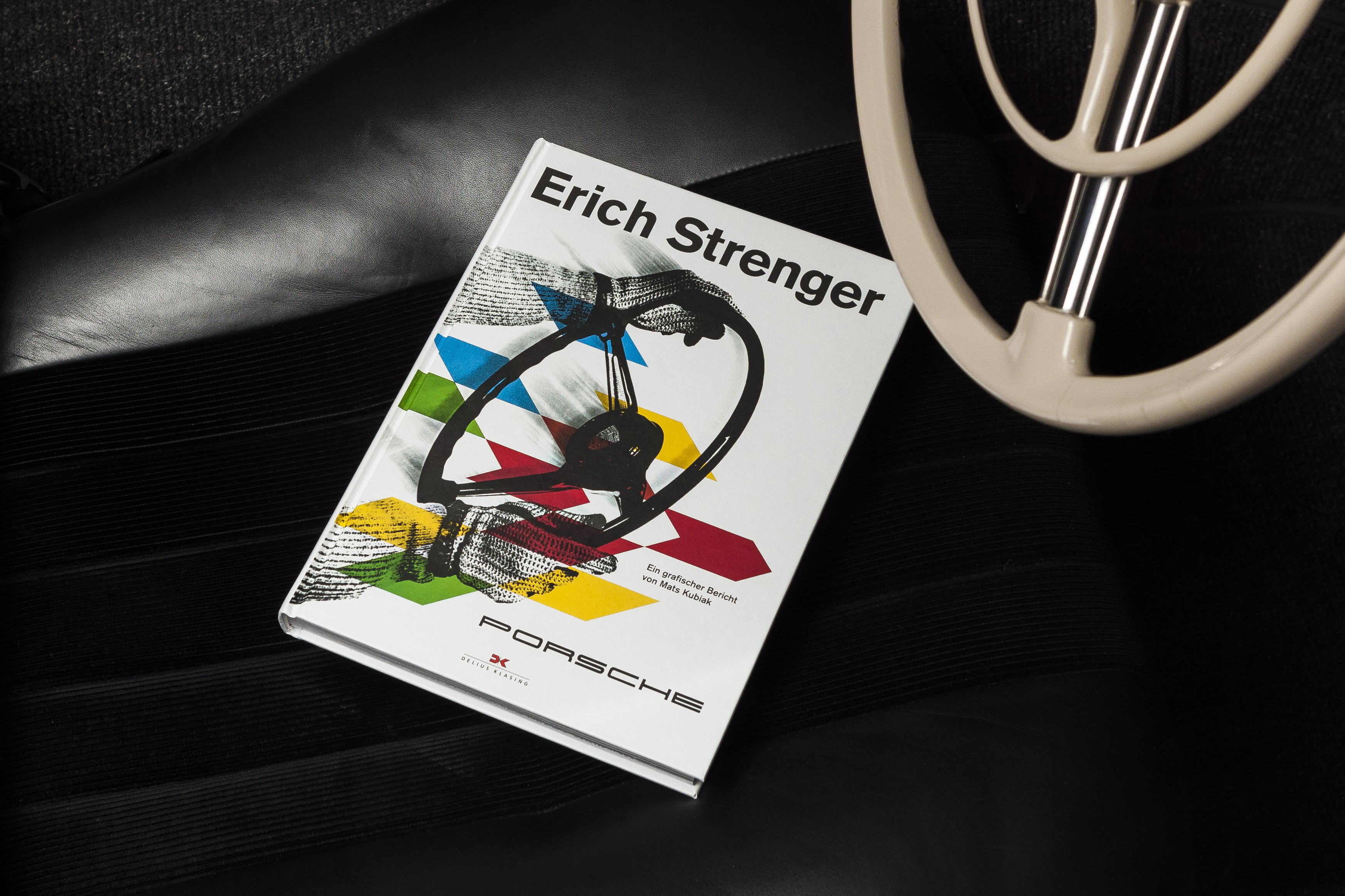 An Erich Strenger bewundert Kubiak vor allem das vielseitige technische Können. »Er war ein sehr versierter Handwerker, hat auch selbst fotografiert und illustriert. Im Buch sind unter anderem beeindruckende Handzeichnungen diverser Porsche-Modelle zu sehen sowie ein Foto, das ihn beim Anfertigen dieser Bilder zeigt.« Typografisch, so Kubiak, gab es kaum Variationen: Strengers Lieblingsschrift war die Akzidenz Grotesk.