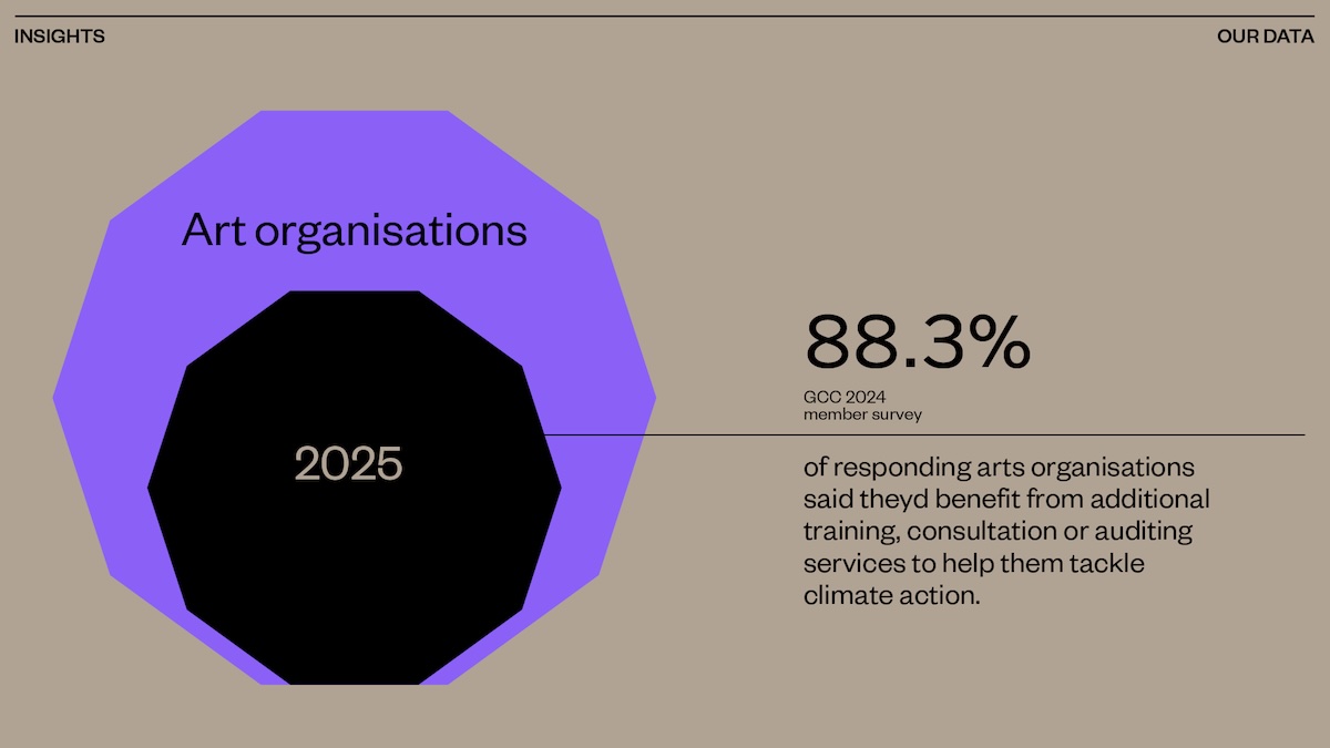 2020 entstand in London die Gallery Climate Coalition (GCC), die bis 2030 in der Kunstwelt eine Reduzierung der CO2-Emissionen um mindestens 50 Prozent anstrebt und dazu abfallärmere Betriebsabläufe.