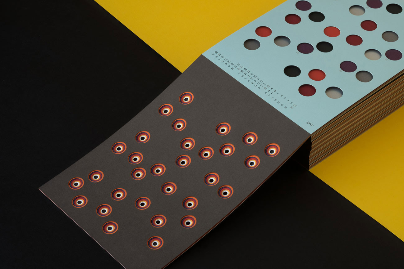 Die einzelnen Monate bestehen aus verschiedenen hochwertigen, gefärbten Papieren von Fedrigoni – von leuchtendem Sonnengelb zu eisigem Hellblau, samtenem Lila und sattem Grün.