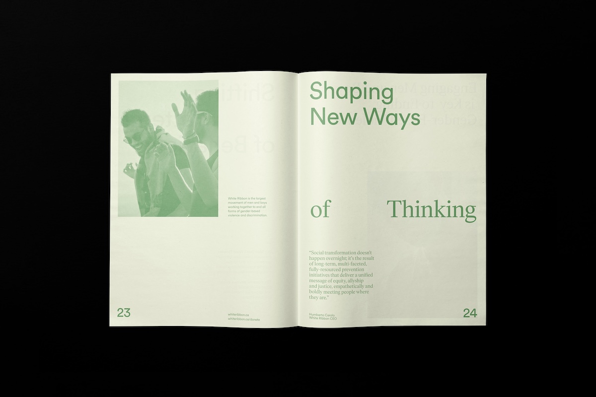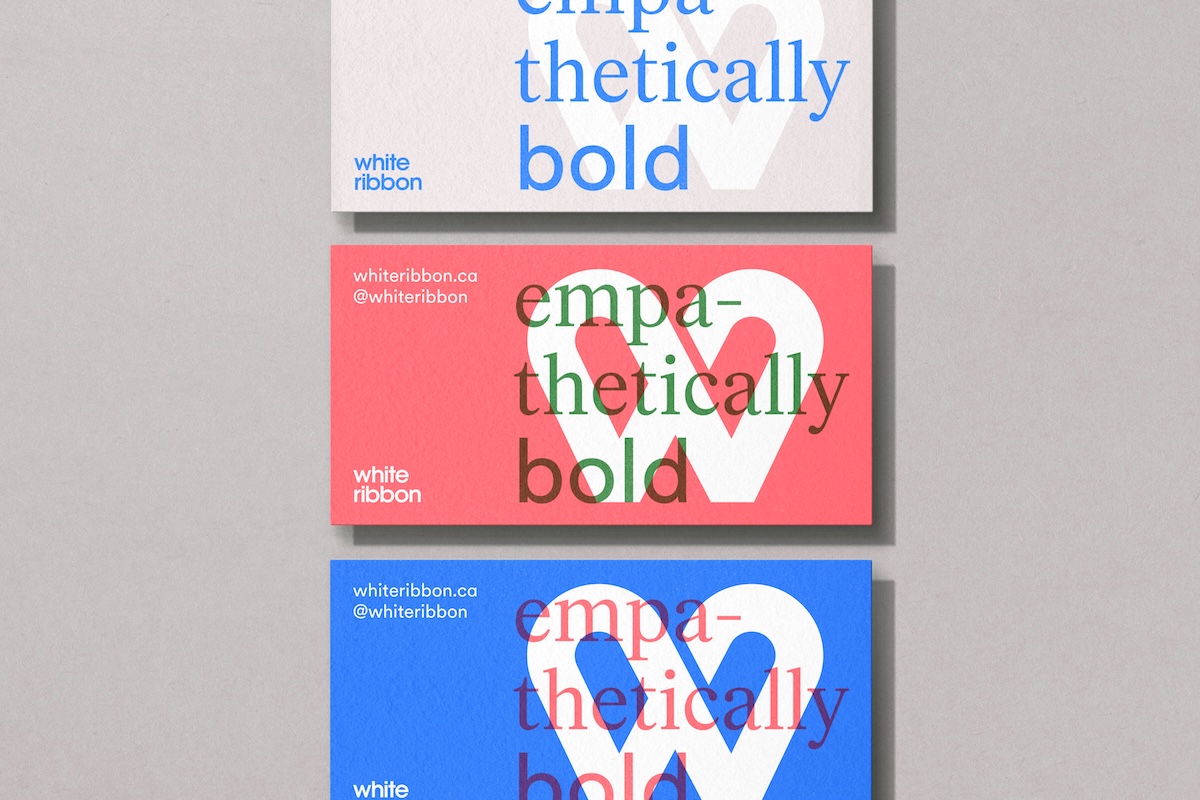 Da sich die Zeiten verändern, Bilder und auch Geschlechtsidentitäten, bat White Ribbon das Kreativstudio Blok Design aus Toronto, ihre Identity zu überarbeiten und sie ins heute zu bringen.