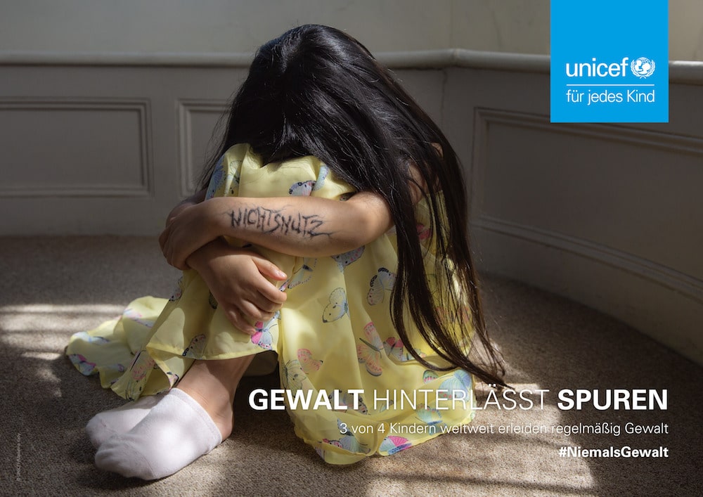 Die Kampagne #NiemalsGewalt, die BBDO Düsseldorf für Unicef entwickelte, will über das Ausmaß und über die Folgen der Gewalt gegen Kinder aufklären.