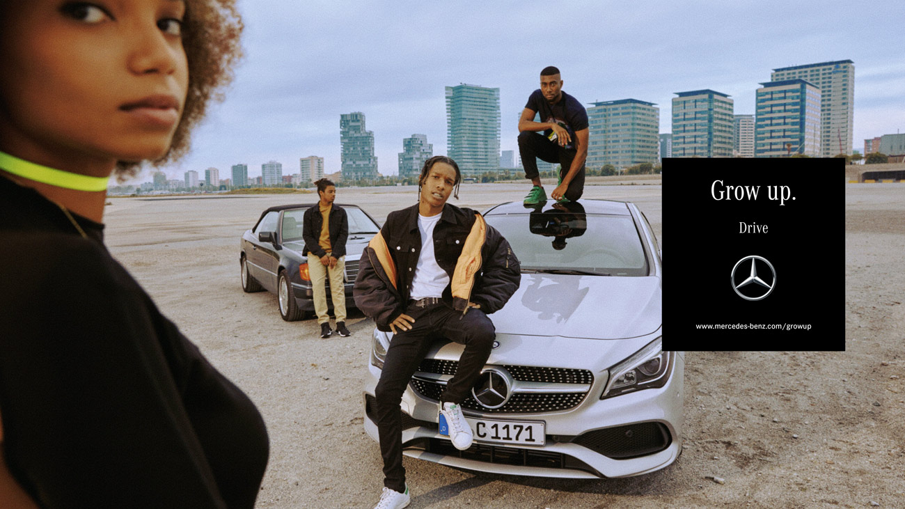 »Grow up« heißt die neue Kampagne für Mercedes, in der mehr als 100 Bewegtbildsequenzen und über 90 Fotografien für eine neue Mercedes-Generation werben – und das ist so beeindruckend wie verblüffend und modern.