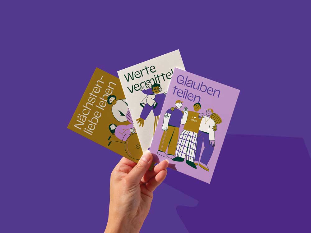 Flexibel, fröhlich und modern: Mit der neuen Hausschrift, frischen Icons und Illustrationen und einer starken Farbpalette können die Mitarbeiter:innen des Erzbistums vielfältige Kommunikationsmedien erstellen