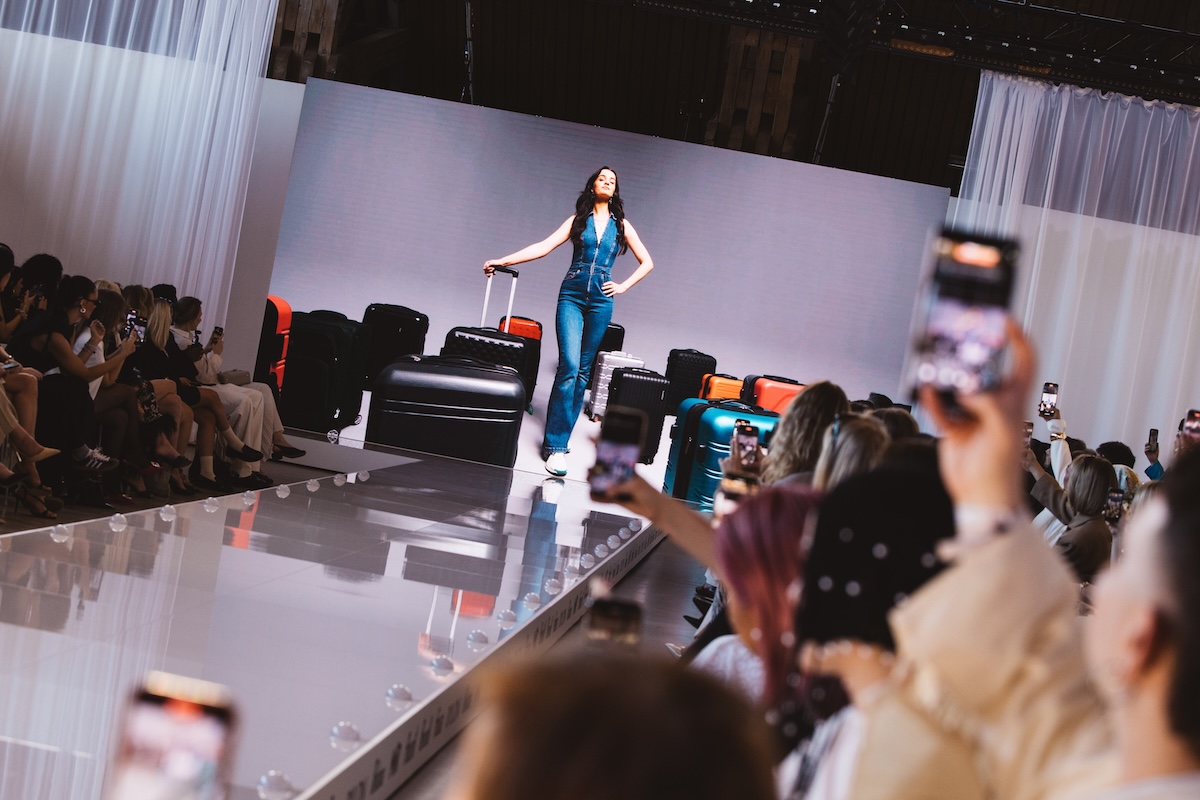 Umgeben war die Fashionshow von einer Kommunikation im Raum, zu der eine Anzeigetafel im Flughafen-Stil, Airport-Fotospots und Waschmaschinen gehörten.