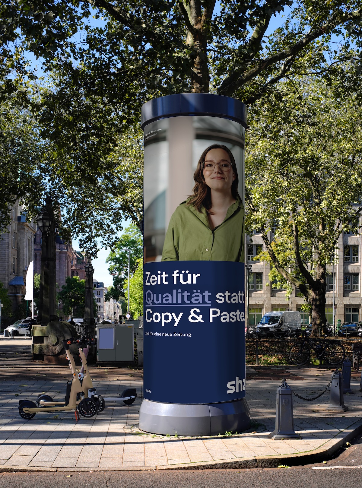 »Journalismuss« heißt es darauf, »Pressefreiheit kann ja jeder sagen. Zum Glück« und auch der zentrale Claim »Zeit für eine neue Zeitung« ist zu lesen.