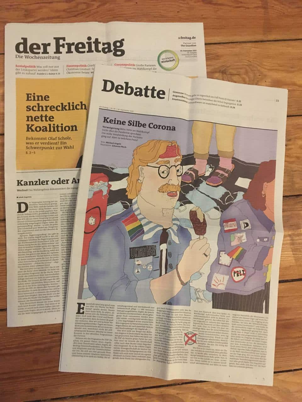 Der Freitag “Keine Silbe Corona” Editorial Illustration für der Freitag im September 2021 zur Bundestagswahl.