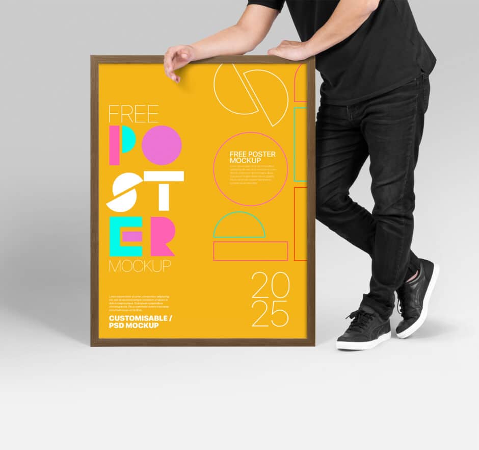 Poster is always being a very expressive medium for art and design and specifically for designers, it is very attractive way to present their design or art publicly. Today Pixpine offers a free poster mockup in a very realistic way. In this free realistic poster mockup a man is holding 18×24 size poster. If you are an artist painter or a digital art creator, present you work with this photorealistic mockup. Download it free for commercial or personal use.