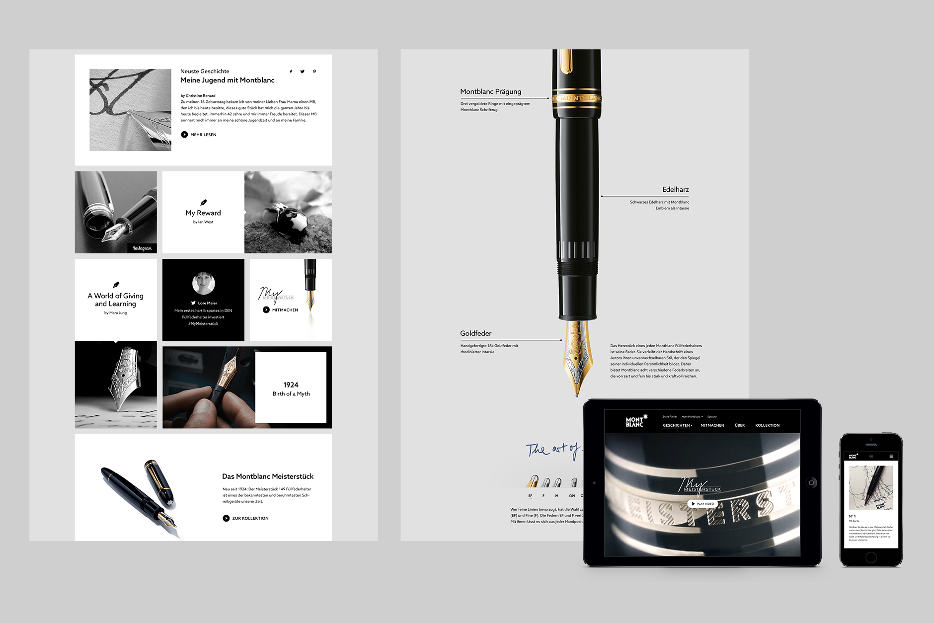 Für die Agnetur Demodern entwarf ich ein Responsive Layout für ein Online-Special der Luxusmarke Montblanc. Das Special vereint die persönlichen Momente von Menschen aus aller Welt, mit dem Füllfederhalter Meisterstueck.