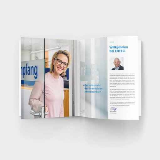 Bei EOTEC steht der Mensch im Mittelpunkt. Diesen wichtigesten Wert setzt yuni auch in der neuen Imagebroschüre gekonnt in Szene. Die Mitarbeiter und Mitarbeiterinnen begrüssen die Kunden freundlich, öffnen die Türe, montieren Kameras oder beraten den Kunden vor Ort. Sympathisch, professionell und innovativ, so präsentiert sich der neue Look der EOTEC.