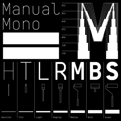 BB Manual Mono™ (Std/Pro) visualizes the work of painters: craftsmanship, precision, professionalism and their tools. The special features of the font emphasize the work process: accuracy (individual modularity), alignment (contextual monoline), flow (visible process). ● 5 Variants: Text, Italic, Standard, Headline, Cover ● 40 OpenType features/Style ● 60 Styles ● 100 Stylistic-Sets (20/Variant) ● 122 Languages…