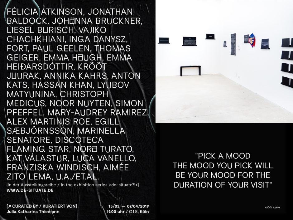 Für die Ausstellung »ACT« im Q18 in Köln kreierten 28 internationale Künstler*innen neue Instruktionen, die von den Rezipient*innen dieses besonderen Ausstellungsformates umgesetzt werden. Somit liegt der Fokus der sprachlich vermittelten Instruktionen auf dem Handeln, Nicht-Handeln und Reflektieren der Rezipient*innen, die die Handlungsanweisungen ausführen. Hierdurch wird das Verhältnis von Künstler*in, Werk, Rezipient*in, Idee und Ausführung in…