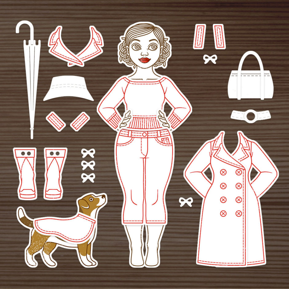 Für Charlie & Paulchen, einen Onlineshop für allerfeinste deutsche Stempel und Stanzen, habe ich die DIY-Ankleidepuppe Gerti und einige jahreszeitliche Outfits entworfen. Für den Herbst gibt es das 24-teilige Set »Gerti geht Gassi«, das aus Pullover, Jeans, Stiefeln, Regenmantel, Südwester, Tasche, Regenschirm und Hundecape besteht, sowie frei platzierbare Besätze und Schleifen. Das 22-teilige Winter-Set…
