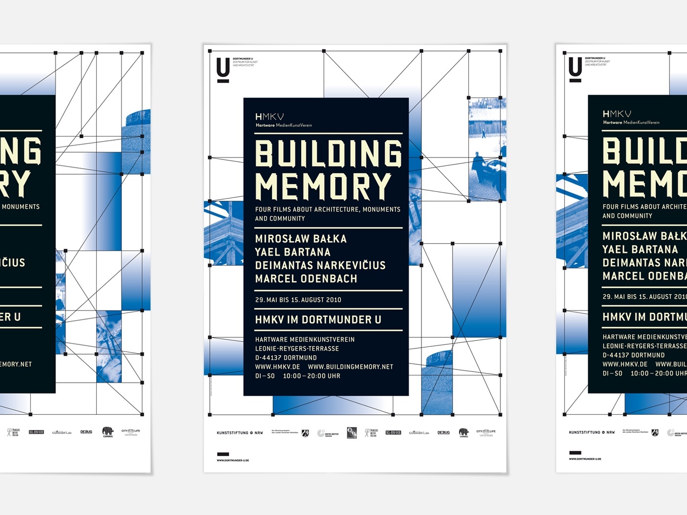 Monumente der Architektur – Zur Wanderausstellung »Building Memory« hat JAC in Zusammenarbeit mit Elena Schneider und Annika Janssen die Idee der Künstler mit Plakaten, Flyern und einer Website weitergeführt. In der Ausstellung wurden vier Filme gezeigt, die sich mit architektonischen Leistungen beschäftigen, die Erinnerungen und Identitäten schaffen. In Zusammenarbeit mit ihren Kollegen wurde eine Wortmarke…