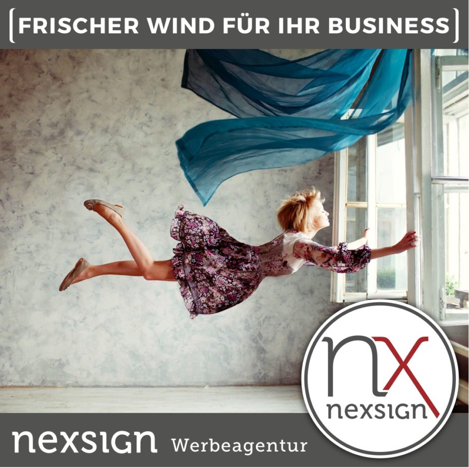 FRISCHER WIND FÜR IHR BUSINESS Es gibt Werbeagenturen. Es gibt Designagenturen. Und es gibt nexsign. Persönlich, verlässlich, kreativ – zum fairen Preis. nexsign ist eine Ein-Mann-Werbeagentur, mit viel Erfahrung, sowohl im Online- als auch im Druck- Bereich. Ein Ansprechpartner, der Sie ehrlich berät, persönlich betreut und Ihnen bei allen Werbemaßnahmen zur Seite…