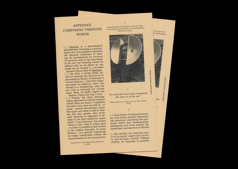 Publication made for Composing Through Words. Curated by Fleur van Muiswinkel. 24×17 cm / 16 pages / Edition of 300 Published by Het Veem Theater