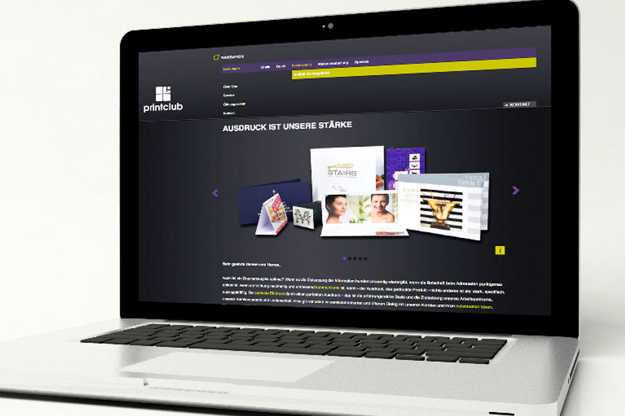 Printclub. – Projektleitung – Informationsarchitektur – Screendesign – 3D-gerendertes Intro