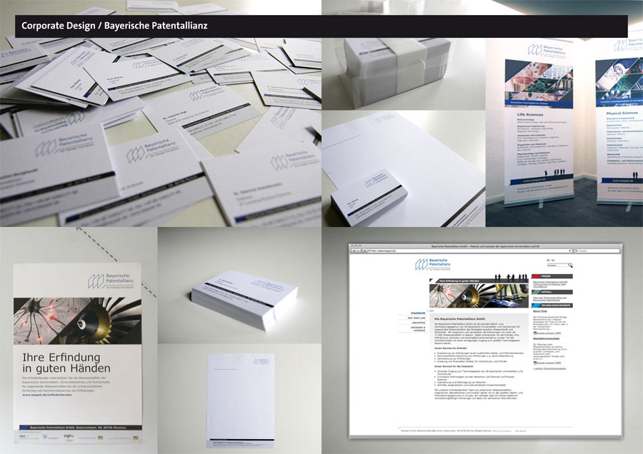 Corporate Design, Geschäftausstattung, Poster, RollUp-Banner, Website der Bayerischen Patentallianz