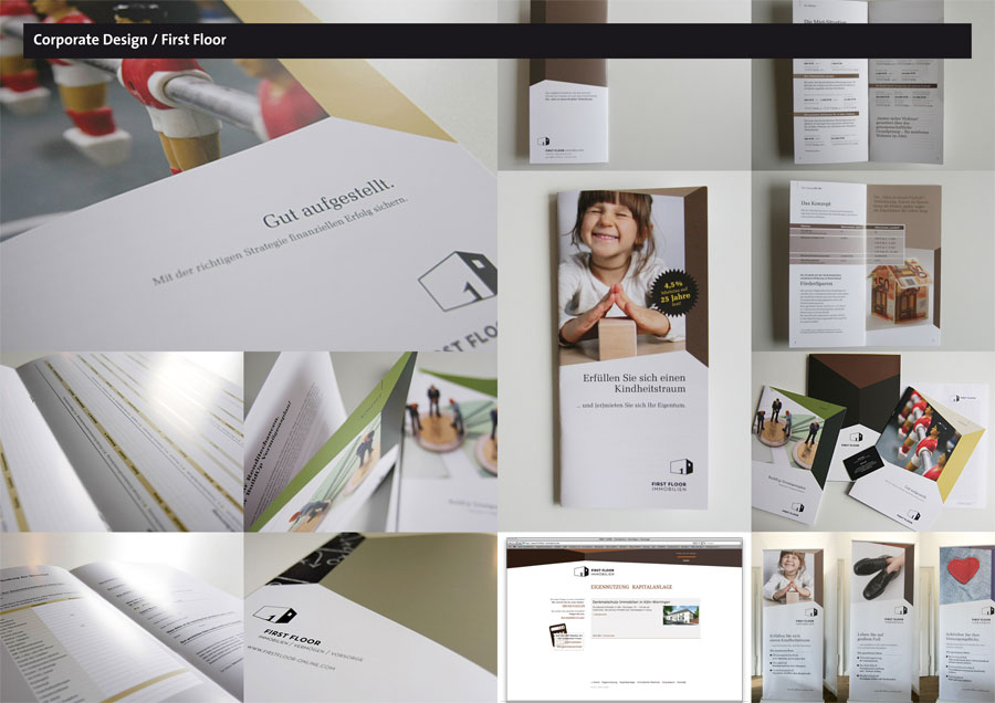 Corporate Design – Logo, Broschüren, Flyer, RollUp-Banner, Website für First Floor – Immobilien, Vermögen, Vorsorge