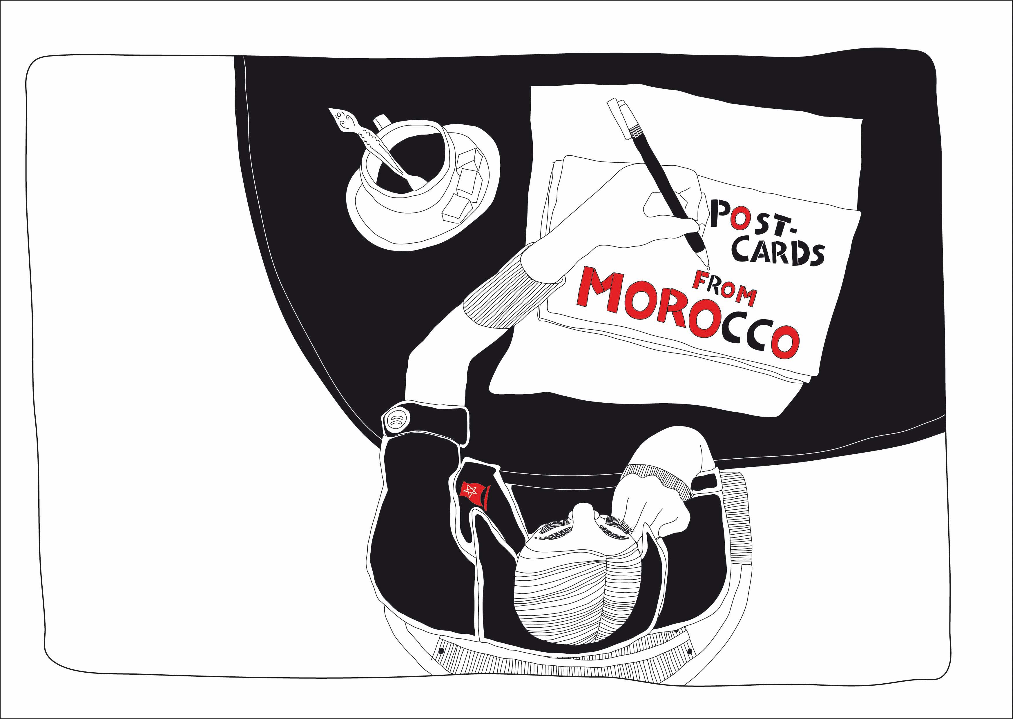 Dakhla. Illustration zur Serie “Postcards from Morocco”. Selbstportait mit Milchkaffee in Dakhla, Westsahara.