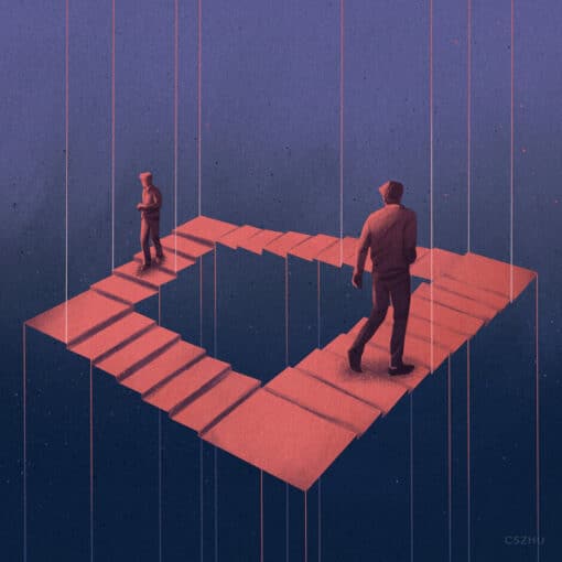 Coverillustration für Neue Narrative #15. Das Thema dieser Ausgabe lautete “Leistung”. Leistung wird oft körperlich dargestellt, zum Beispiel mit Metaphern wie Motoren, Sport, Muskeln. Davon wollten das NN-Team und ich uns distanzieren und eine andere Bildsprache finden. Die Fantasielandschaft mit surrealer Architektur greift verschiedene Aspekte des Kernthemas auf: z.B. dass Leistung nicht linear verläuft, dass…