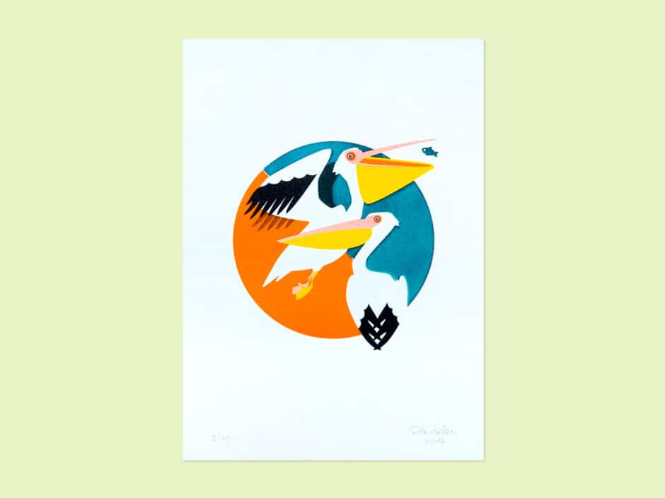 Risoprints https://www.piakolle.de/shop/risographien/ 5-farbige Risoprints mit einer Farbe im Linolschnitt gedruckt, DIN A4, Auflage von jeweils 40 Stück