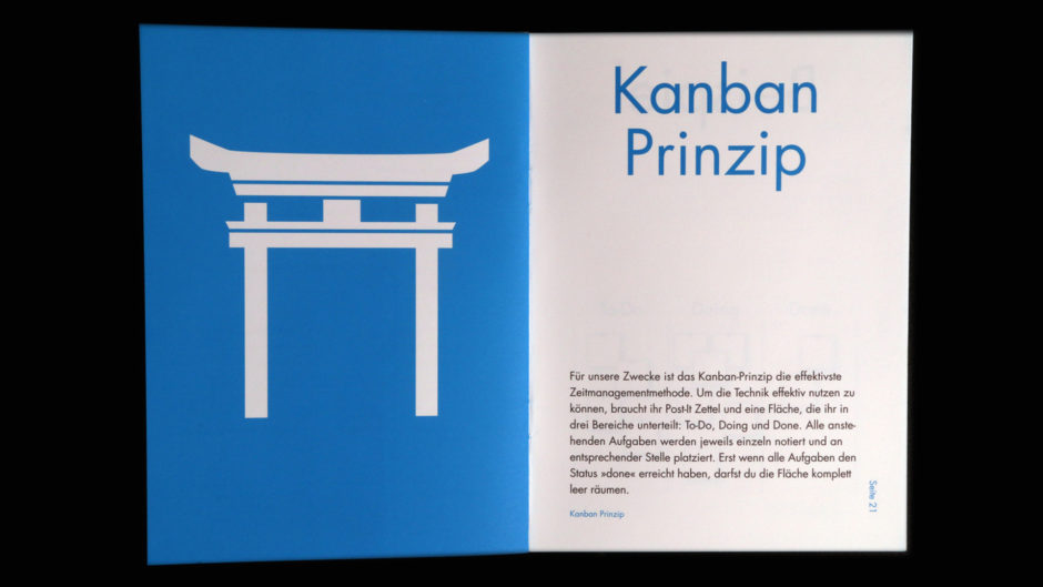 Innerhalb des wiederkehrenden Seminars „Design Redaktion“ an der Hochschule Düsseldorf, dass sich dafür einsetzt die Qualität des Studiums zu verbessern, habe ich eine Reihe von Zeitmanagement Methoden in einem Heft zusammengefasst. Ich habe die Methoden näher erklärt und mithilfe von Beispielen visualisiert. Das Heft wurde in einer Auflage von 500 Stück gedruckt und im Fachbereich verteilt.