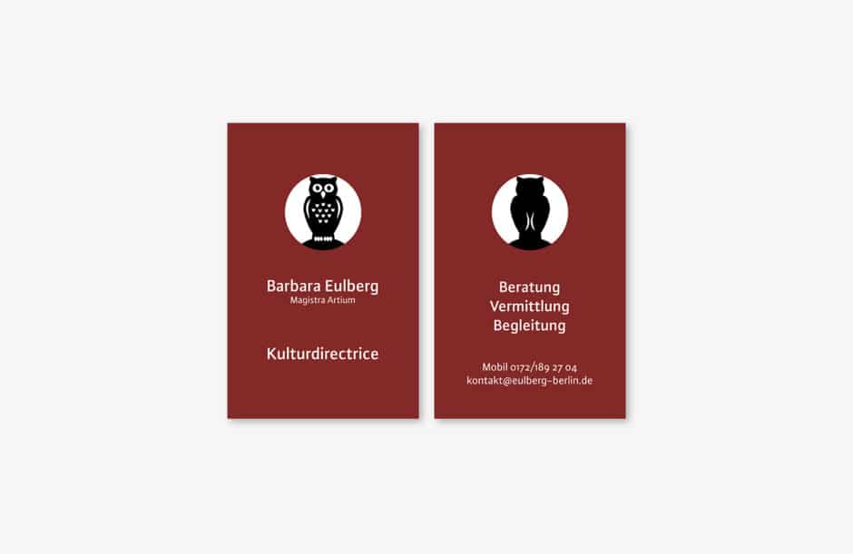 Visitenkarten Leistungen: Entwurf, Layout, Satz, Logoentwicklung Auftraggeber: Barbara Eulberg, Berlin; Miliane Meimeth, Berlin