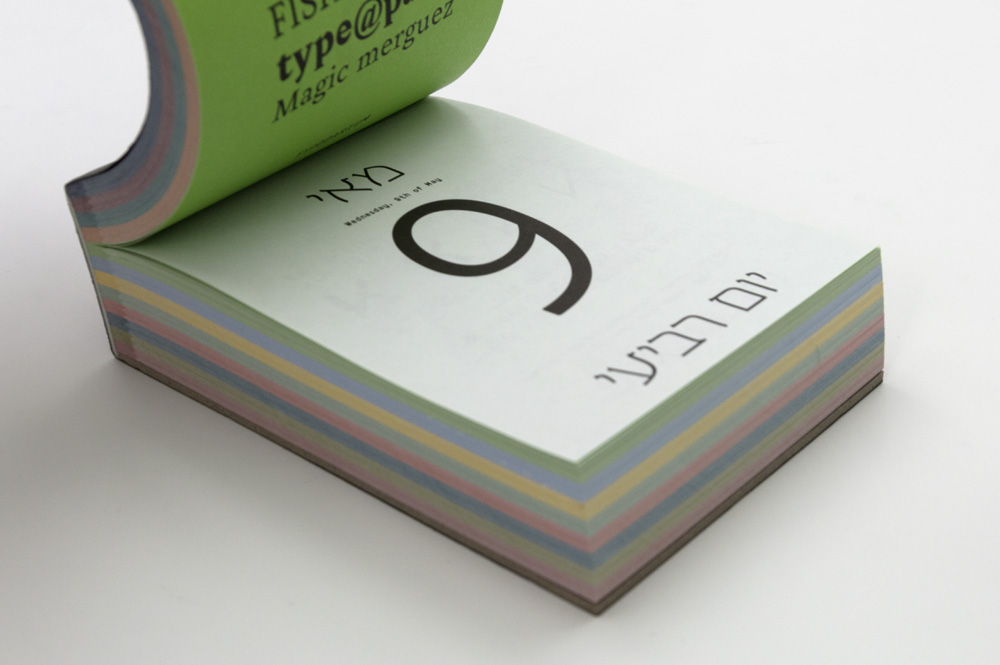 Der Abreißkalender sorgt jeden Tag für ein Stück internationale Schriftenvielfalt auf dem Schreibtisch.