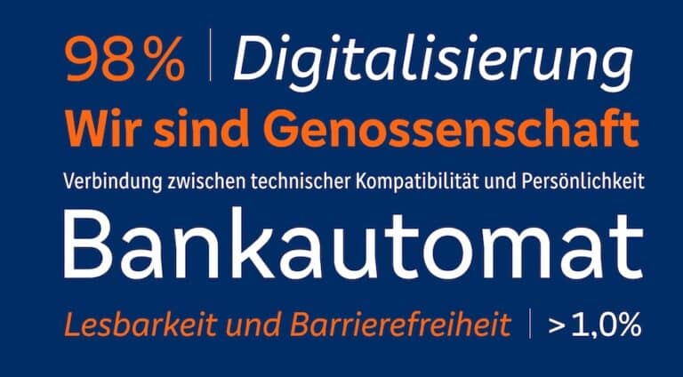 Die Schriftfamilie verbindet technische Kompatibilität, Persönlichkeit und Barrierefreiheit und stärkt so die Marke Volksbanken Raiffeisenbanken an allen Kontaktpunkten. Genos GFG transportiert die genossenschaftlichen Werte Gemeinsamkeit und Nähe und wird damit zum charaktervollen und zentralen Bestandteil des Corporate Designs. »Überall, wo unser geschriebenes Wort Menschen begegnet, wollen wir unsere genossenschaftlichen Werte der Gemeinsamkeit und Nähe transportieren. Wir leben Genossenschaft, Zusammenhalt und Mitspracherecht. Unsere neue Schrift auch,« so Florian Kinast, Gruppenleiter Markenstrategie Bundesverband der Deutschen Volksbanken und Raiffeisenbanken.
