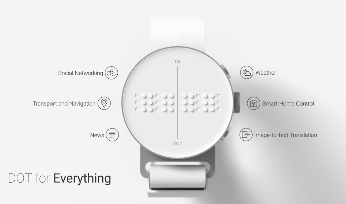 - Design: Die Braille-Smartwatch DOT (siehe Bild oben) von Serviceplan